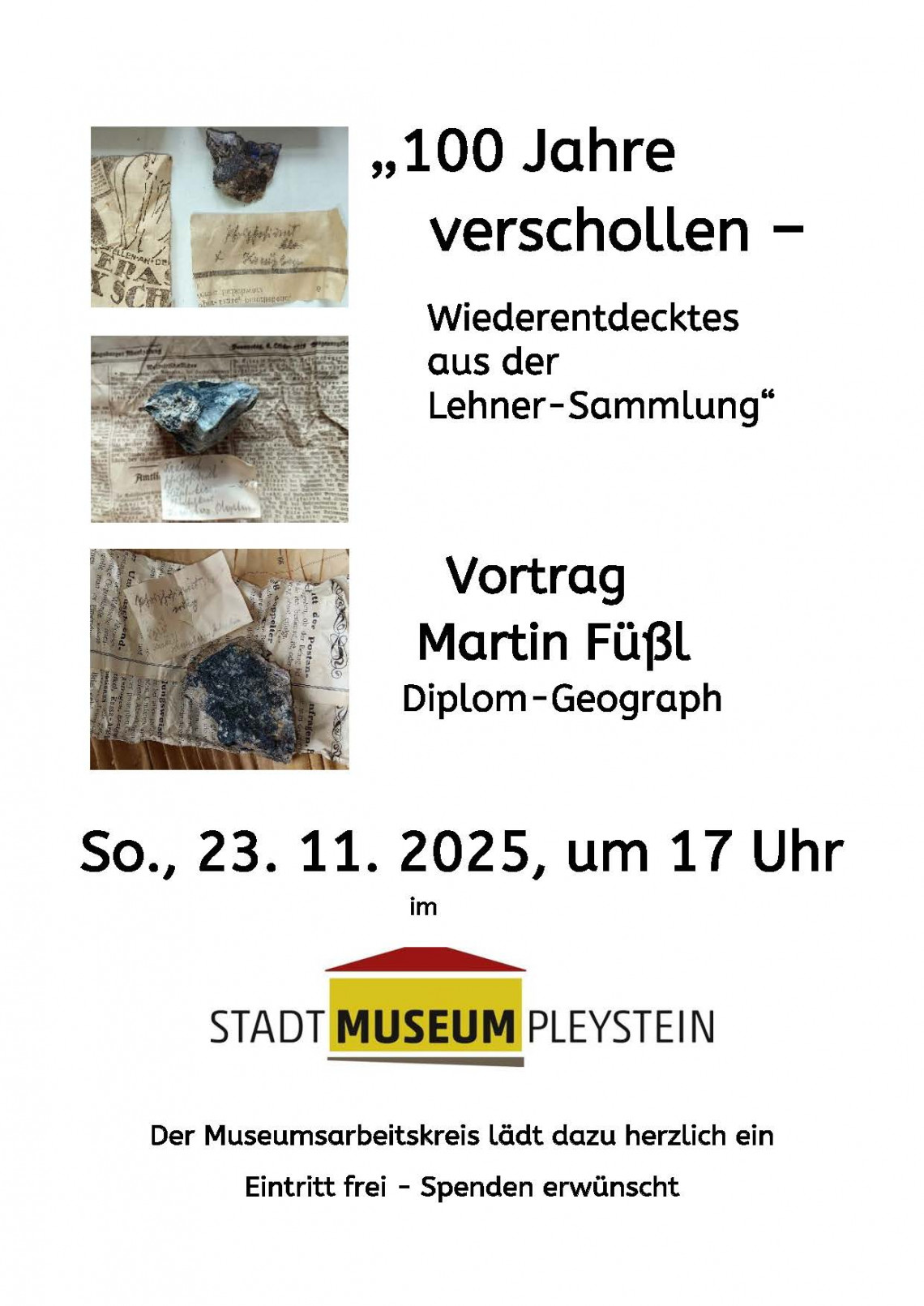 Unser Museum bietet vielfältige Informationen über die Geschichte Pleysteins, stellt das bürgerliche Leben vor 50 bis 100 Jahren dar und lässt es nachempfinden.